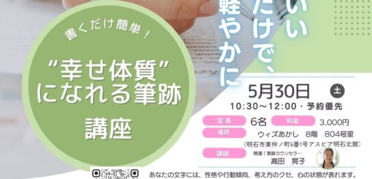 【参加者募集】5月30日(土) 「書くだけ簡単!”幸せ体質”になれる筆跡講座」